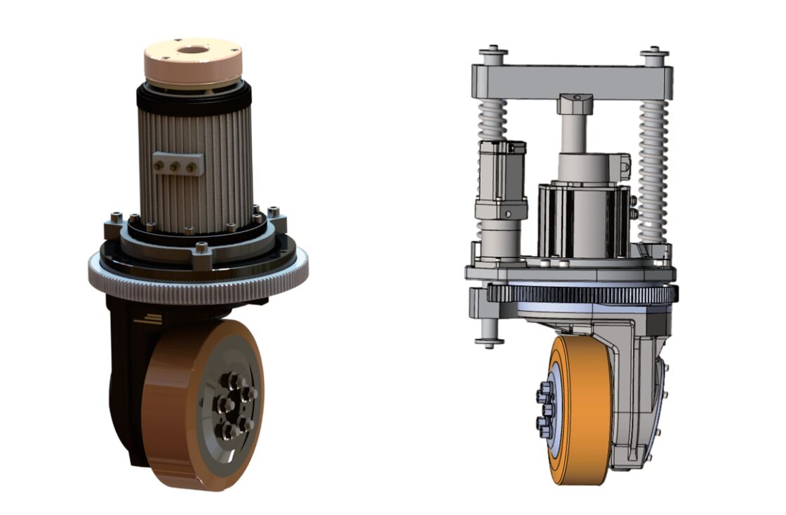 Dikey yönlendirmeli tekerlek, hız geri bildirimi, bir yönlendirme mekanizması, konum sensörleri, limit anahtarları ve bir fren sistemine sahip bir tahrik sisteminden oluşur ve hepsi sofistike bir mekatronik düzeneğe sorunsuz bir şekilde entegre edilmiştir. Bu, rafine tahrik yönetimi yoluyla hem hız hem de yönlendirme yönü üzerinde doğru kontrol sağlar.